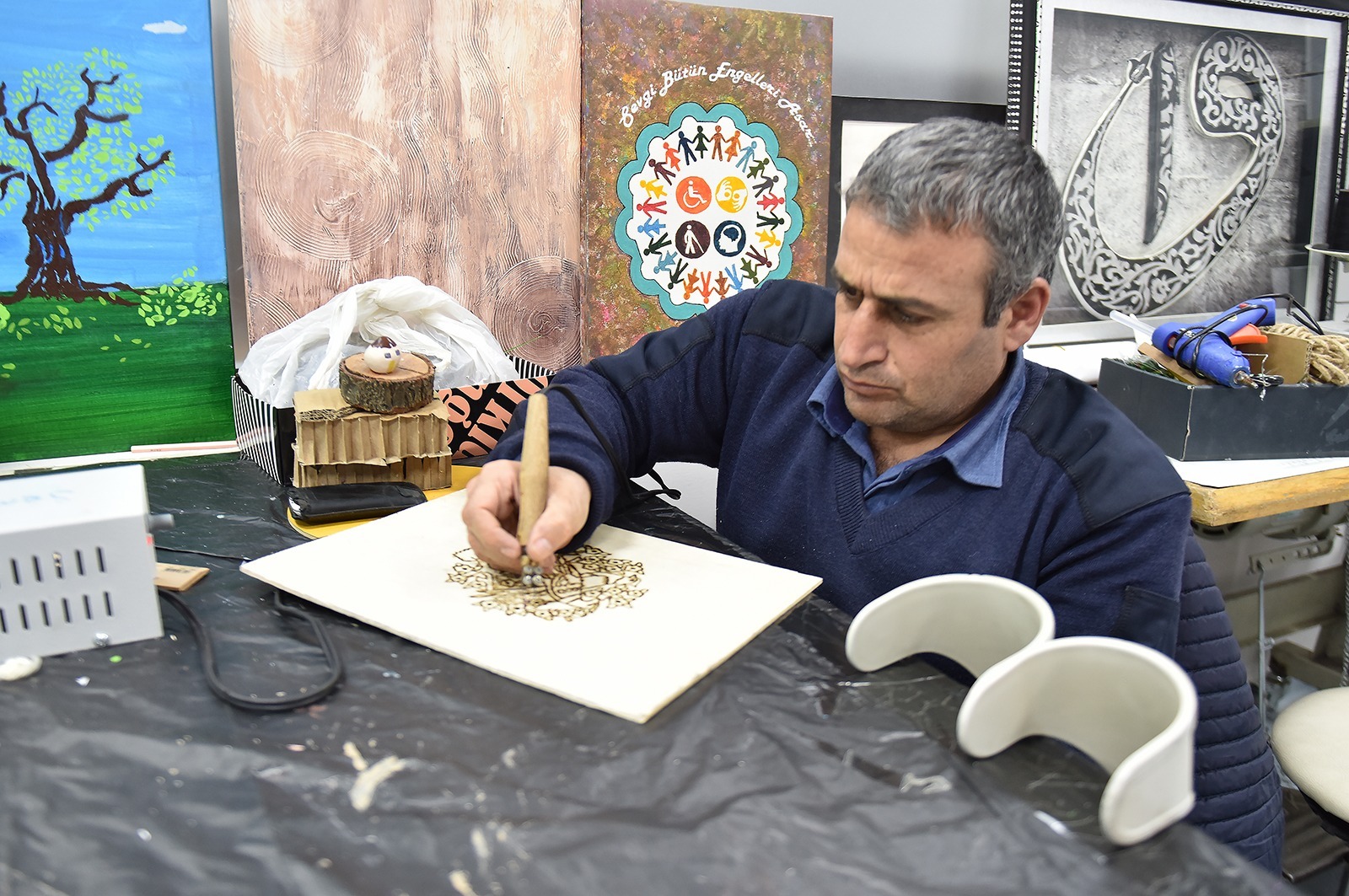 Engelliler Koordinasyon Merkezinde rağbet edilen kurslardan biri de resim kursu. Burada ahşap yakma, boyama, karakalem gibi birçok resim tekniğini öğrenen öğrenciler, zamanlarını güzel bir şekilde değerlendirme fırsatı yakalıyor.