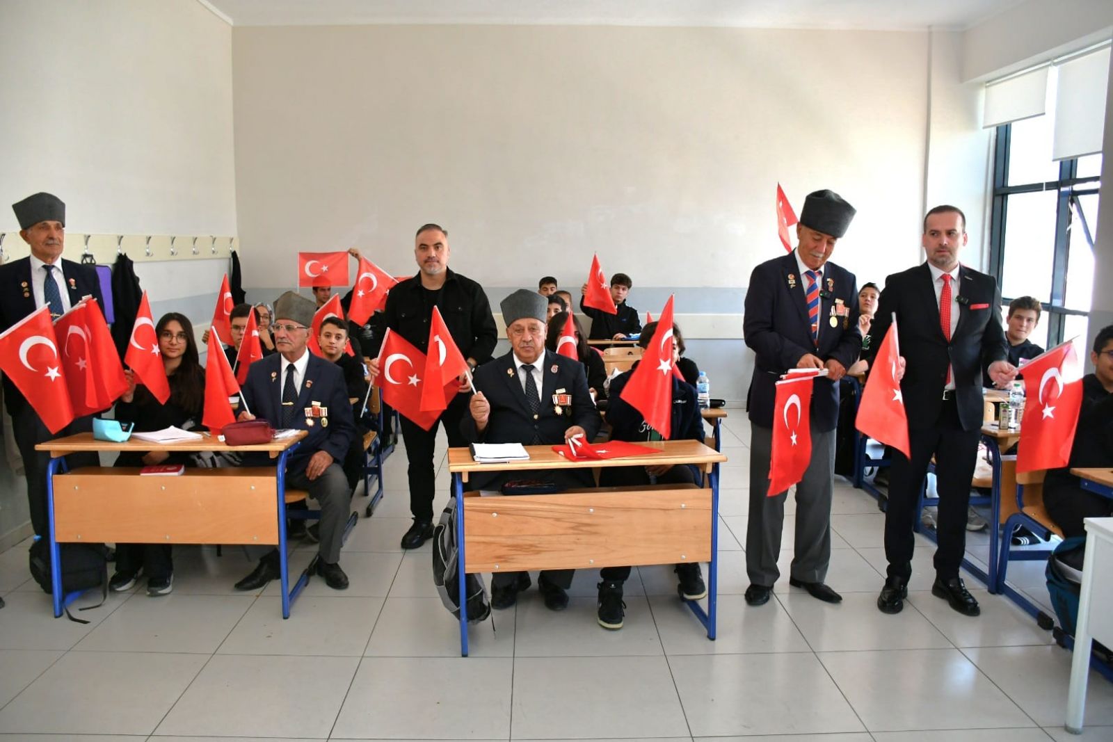 Malatya Girişimci İş İnsanları Derneği (MAGİNDER) Başkanı Salih Karademir, 29 Ekim Cumhuriyet Bayramı öncesinde Türkiye Muharip Gaziler Derneği Malatya Şube Başkanı İbrahim Cengiz ve yönetimiyle birlikte okulları ve esnafları ziyaret ederek Türk bayrağı dağıttı.