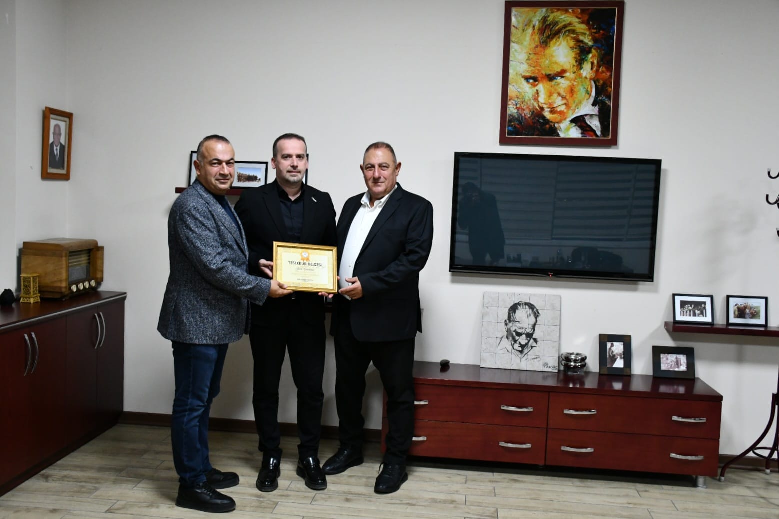 Ziyarette Malatya Eğitim Vakfı Genel Başkanı Mustafa Tecdelioğlu’nun vakfa verdiği destekler için hazırlattığı teşekkür belgesi Malatya Temsilcisi Arif Aksoğan tarafından Başkan Karademir'e takdim edildi.