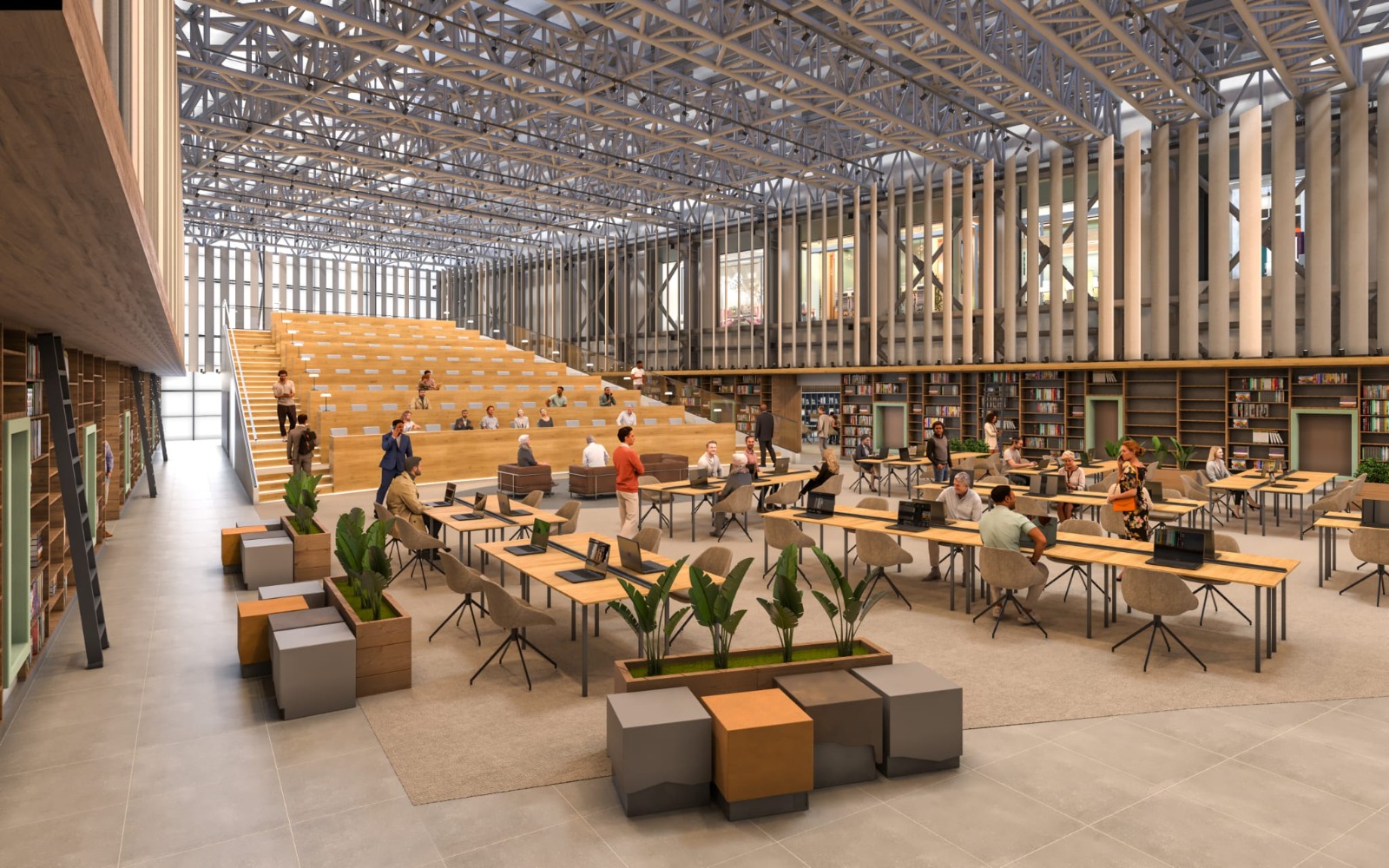 Kütüphane amfi, seminer salonları, öğrenci işleri, serbest çalışma alanları, bilgisayarlı çalışma masaları, öğrencilere hizmet verecek kafeterya yer alacak. Kütüphane, özel bir yazılım sistemi ile öğrencilere hizmet verecek. Kütüphane bünyesinde 96 sandalye kapasiteli ve 240 metrekare büyüklüğünde modern bir kafeterya yer alacak. Modern ve çok amaçlı olarak planlanan kütüphanede 460 kişilik serbest çalışma alanı, 95 kişilik bilgisayarlı çalışma alanı, 100 kişilik amfi alanı, 60 kişilik seminer salonu, 96 kişilik kafeterya alanı bulunuyor. Kütüphane, aynı anda 815 kişinin kullanımına imkân sağlayacak şekilde tasarlandı.