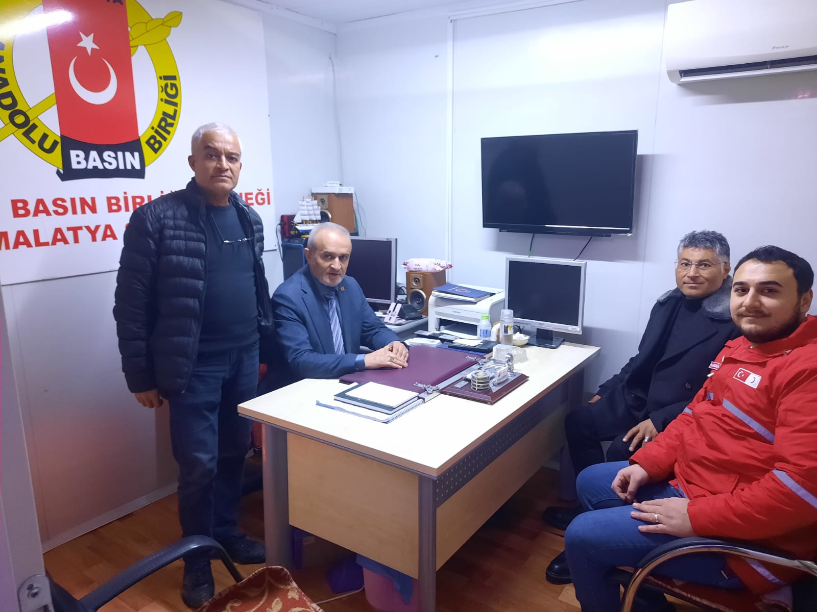 Türk Kızılay Yeşilyurt Şube Başkanı Tevfik Gören, 10 Ocak Çalışan Gazeteciler Günü dolayısıyla Anadolu Basın Birliği Malatya Şubesini ve deprem sonrası konteynerlerde görev yapan basın mensuplarını ziyaret etti.